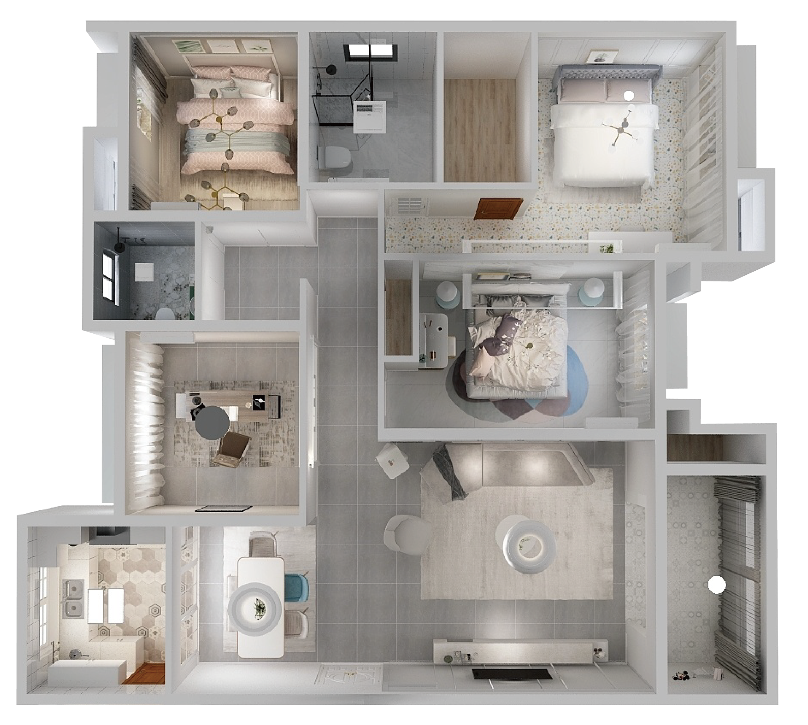 以木门、背景墙、系统门窗为基础的家场景立面装饰系统